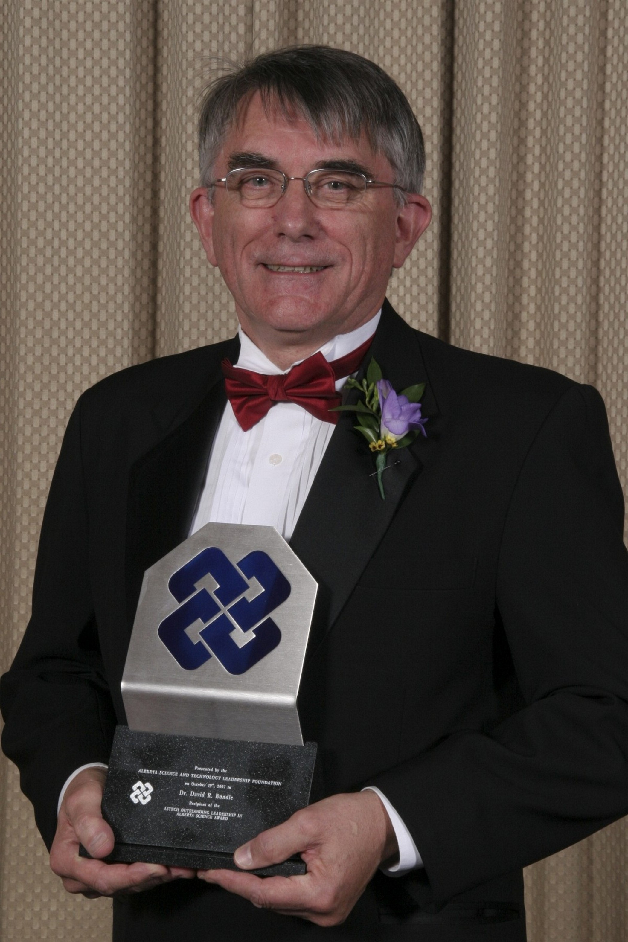 DAVID REGINALD BUNDLE, Professor, Department of Chemistry, University of Alberta, has led in the field of glycobiology - that life science concerned with the role of complex carbohydrate structures (oligosaccharide ligands) in cell biology. He pioneered the synthesis of both bacterial cell-surface oligosaccharides and structural analogs for systematic physical studies of their recognition by specific monoclonal antibodies. He was uniquely capable of bringing to bear a whole array of the most sophisticated modern methods (including hybridoma technology, protein engineering, X-ray crystallography microcalorimetry, molecular modelling and H- and C-NMR spectroscopy) for structural and thermodynamic studies of oligosaccharide of protein interactions that are of broad and crucial importance to cellular life.