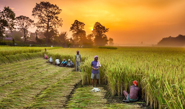 People work in a rice field in Nepal. (Shutterstock) Kai Chan, University of British Columbia