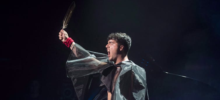 Language is a complex structure. Here, Jeremy Dutcher performs during the Polaris Music Prize gala in Toronto on Sept. 17, 2018. Dutcher’s award-winning album Wolastoqiyik Lintuwakonawa is in the Wolastoqey language. THE CANADIAN PRESS/Tijana Martin Frank Deer, University of Manitoba